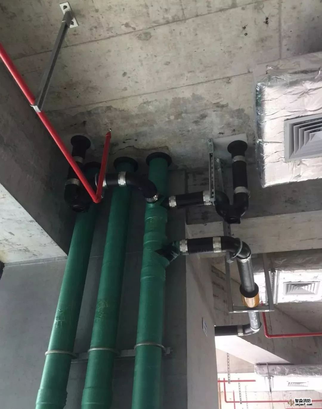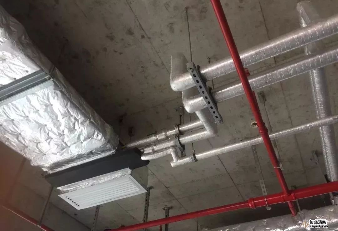 空調水管道,坡度正確,支架布置合理,保溫整齊美觀。