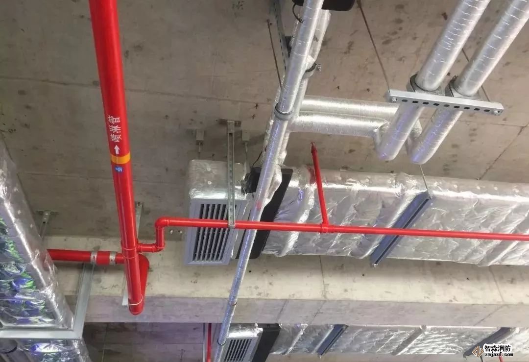 消防噴淋管道間距一致,標識清楚、成排成線。