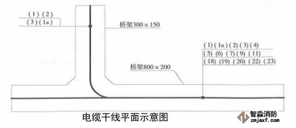 5、橋架內電纜敷設:按圖確定起點終點及電纜敷設途徑;繪制橋架各個斷面電纜位置,對載流量大的電纜應保持一定的間距,整個橋架內的電纜截面不應超過橋架截面的60%;電纜敷設前應清掃橋架,檢查橋架有無毛刺等可能劃傷電纜的缺陷;電纜在橋架內分層排列整齊,不應交叉,電纜在起點、終點、水平彎曲處電纜與橋架應綁扎,豎直電纜最高點、自身重力作用下宜跑位,轉彎處、三通處應做綁扎固定,與電橋架間每間隔1m綁扎一次,同一回路的單芯電纜、雙拼回路應間距1m自捆扎;穿越防火墻和樓板處防火封堵應嚴密;電纜起點、終點、轉彎及每隔50m處設電纜標牌,標牌內容清晰。