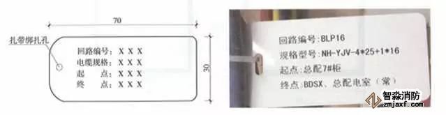 標識項目應直接打印在電纜標牌上,標題采用黑色黑體3號字,內容采用4號字,成排掛牌方向應一致。
