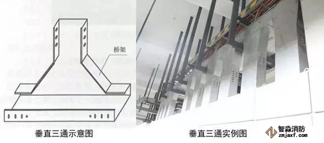 2、橋架三通安裝:根據電纜橋架走向,按照最大電纜直徑的10~15倍選擇三通形式和彎曲半徑。在距三通接口500mm處設置支架,橋架寬度大于800mm時,應在三通底部增加支架。兩段橋架與橋架、橋架與支架之間跨接接地。