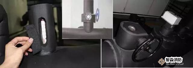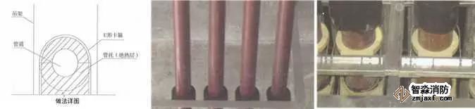 質量控制要點:橡塑管(板)與管托粘接、卡環處預留寬度。采用木托時,防腐處理應到位。管托厚度不得小于絕熱層厚度,接點緊密,表面平整,不得有冷熱橋現象。