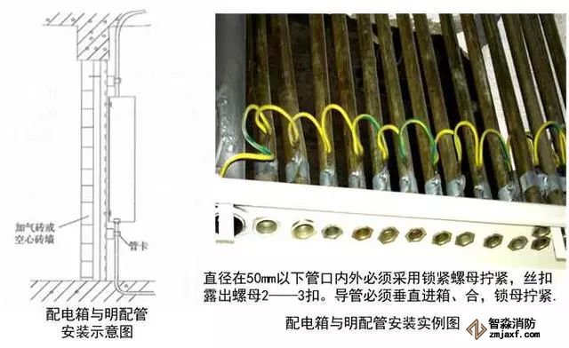 質量控制要點:管口光滑,開孔尺寸與線管一致,固定牢固,接地可靠。