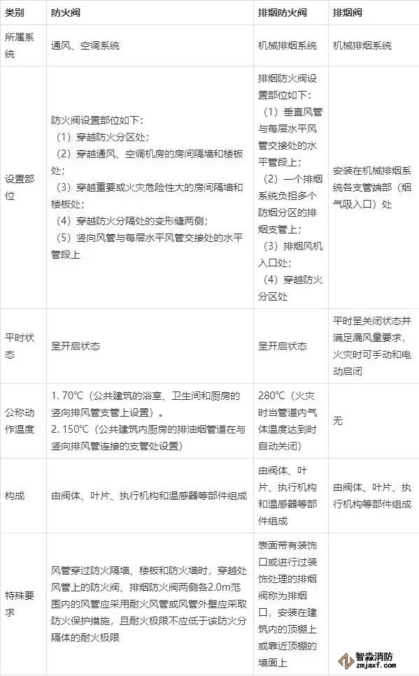 防火閥、排煙防火閥、排煙閥的區別,看表就知道