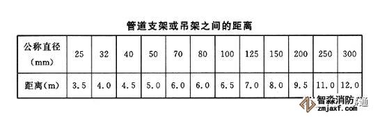 1)管道應固定牢固;管道支架或吊架之間的距離不應大于下表的規(guī)定。