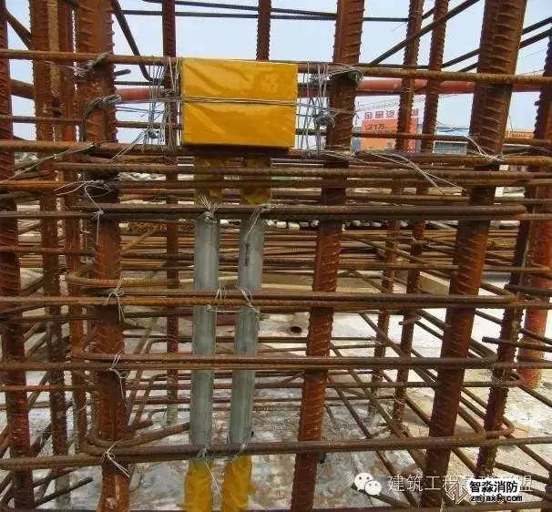 淘汰傳統(tǒng)的預(yù)留法如木盒、鐵皮盒、塑料套管,避免跑模、變形等弊端,采用可提式鋼管盒預(yù)留法,材料利用廢舊鋼管,制作時(shí),套管高度為250mm,套管管徑比圖紙?jiān)O(shè)計(jì)的管徑大兩個(gè)等級(jí),在離預(yù)留盒上口80mm處焊接一個(gè)Φ6圓鋼煨成的提手,以備混凝土達(dá)到一定強(qiáng)度后便于拔出,同時(shí)在預(yù)留盒的底口用鋼板封堵好。 蘇州智淼消防工程安裝公司