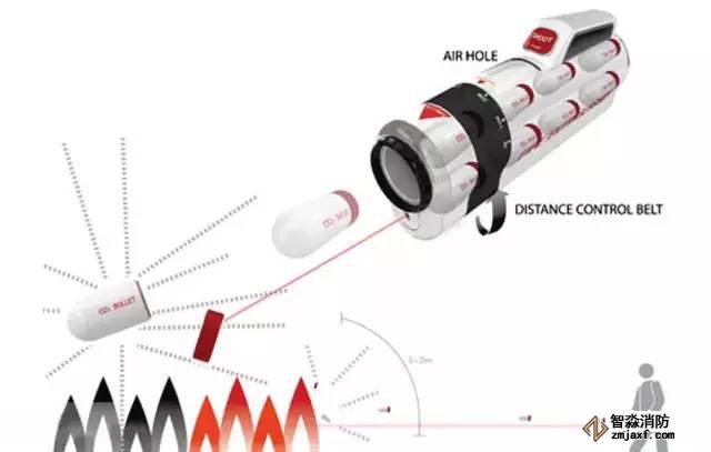 這款滅火器適用于超大型的火災(zāi),將滅火物質(zhì)儲存在了類似于膠囊的小容器中,它借鑒了玩具槍的設(shè)計(jì),而每個(gè)滅火的小容器都是“子彈”。一旦火災(zāi)發(fā)生時(shí),人們只需抓起“滅火槍”對準(zhǔn)火場“開火”即可。這樣不僅有利于滅火物質(zhì)的迅速散開,而且可以在更遠(yuǎn)的距離進(jìn)行滅火,因此安全系數(shù)更高。