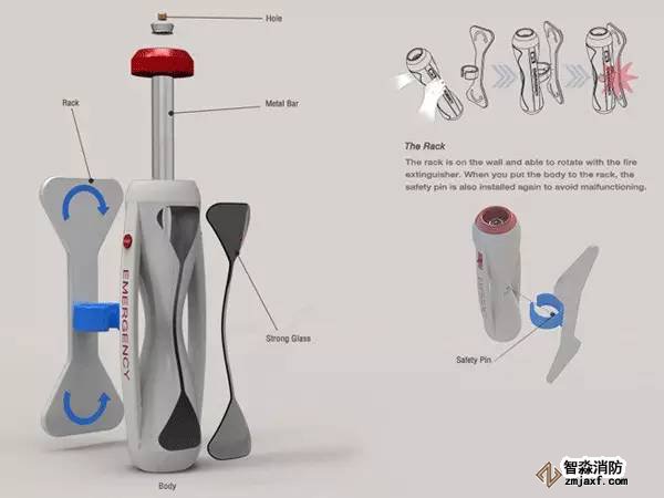 由設(shè)計(jì)師DMoisesHansen設(shè)計(jì)的手持式新型滅火器,不僅在外形還是在使用上都很簡單,讓使用者在使用時(shí)一看便知。這便是簡單粗暴有效!