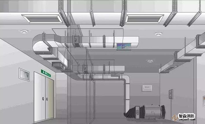 機(jī)械排煙設(shè)施包括排煙風(fēng)機(jī)、排煙管道、排煙防火閥、排煙口、擋煙垂壁等。