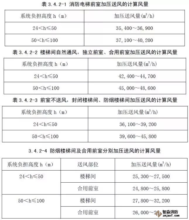 2、表中風量按開啟著火層及其上下兩層,共開啟三層的風量計算;