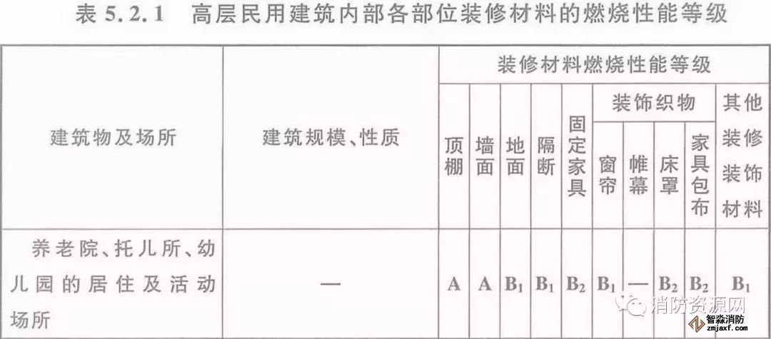 二、當(dāng)設(shè)置在高層民用建筑時,內(nèi)部各部位裝修材料的燃燒性能等級,不應(yīng)低于《建筑內(nèi)部裝修設(shè)計防火規(guī)范》5.2.1的規(guī)定。