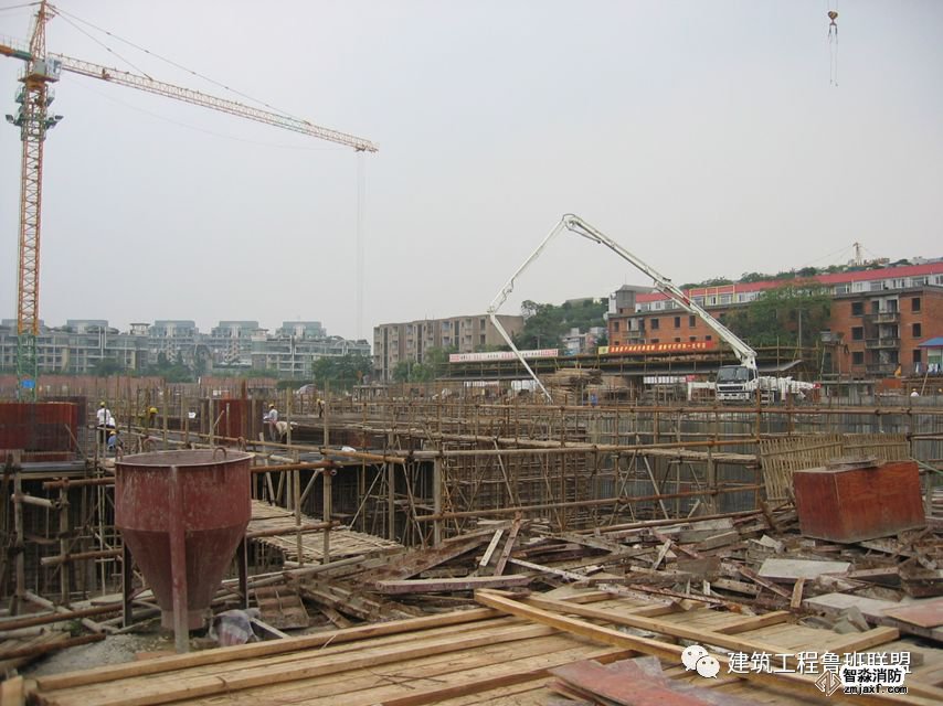 砼泵送車可能在地下室新澆砼頂板上開行,造成不可恢復的早期裂縫。為工程防水帶來麻煩,造成滲漏。