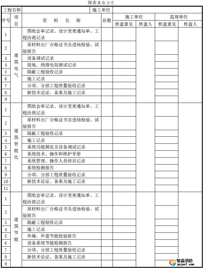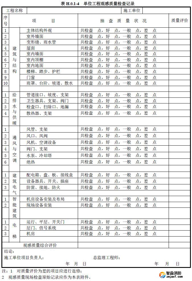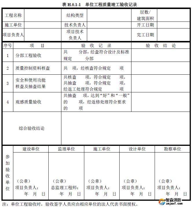單位工程質量竣工驗收記錄、質量控制資料核查記錄、安全和功能檢驗資料核查及主要功能抽查記錄、觀感質量檢查記錄應按《建筑工程施工質量驗收統一標準》附錄H填寫。