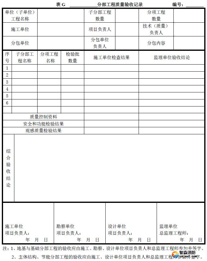 分部工程質量驗收記錄可按《建筑工程施工質量驗收統一標準》附錄G填寫。