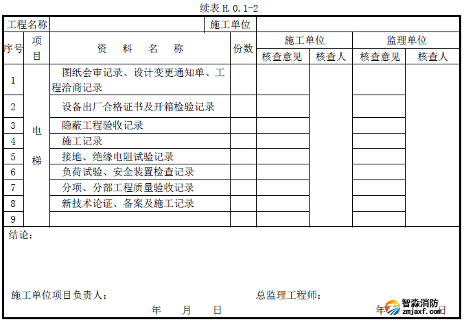 分項工程質量驗收記錄可按《建筑工程施工質量驗收統一標準》附錄F填寫。