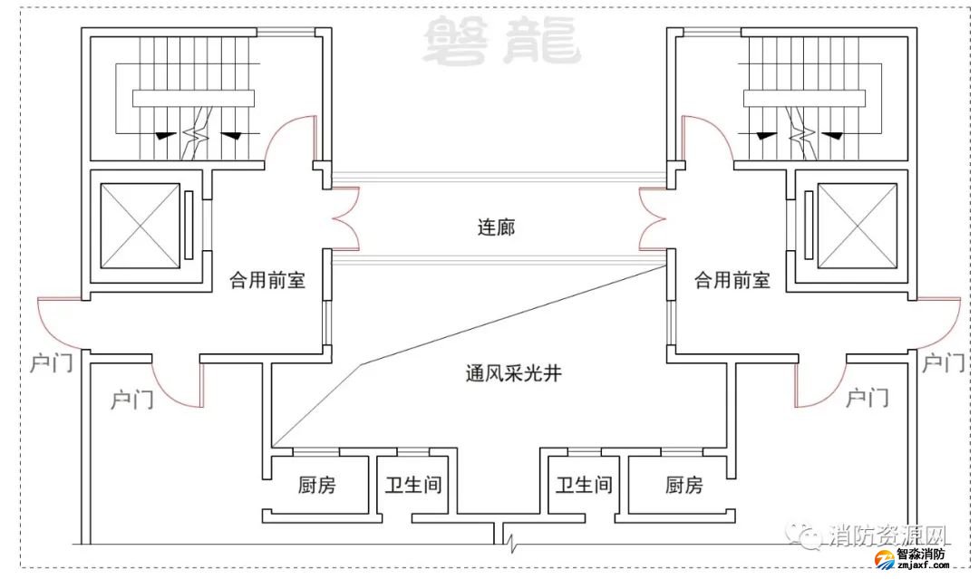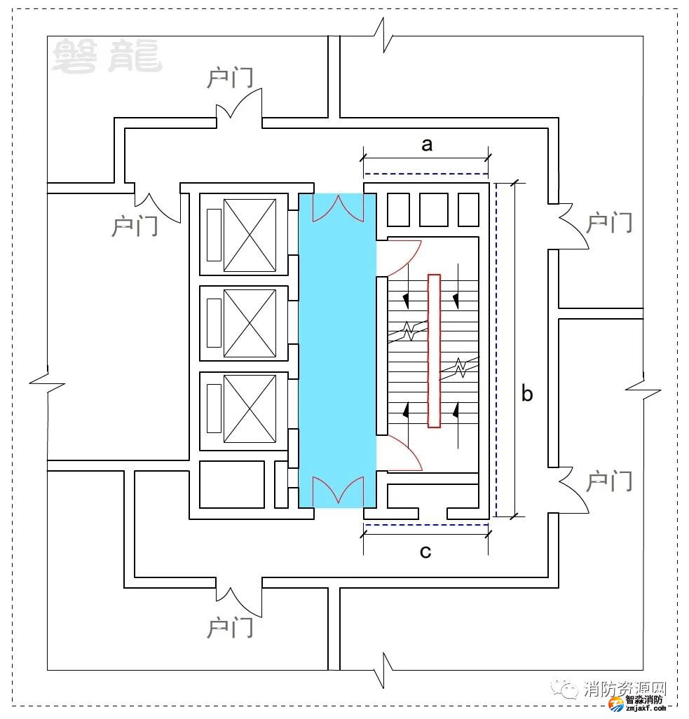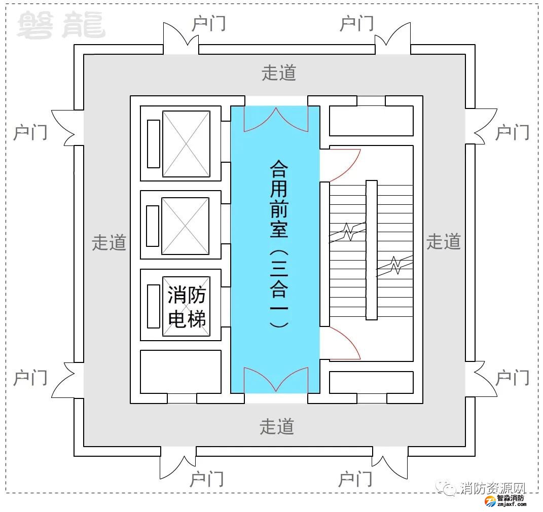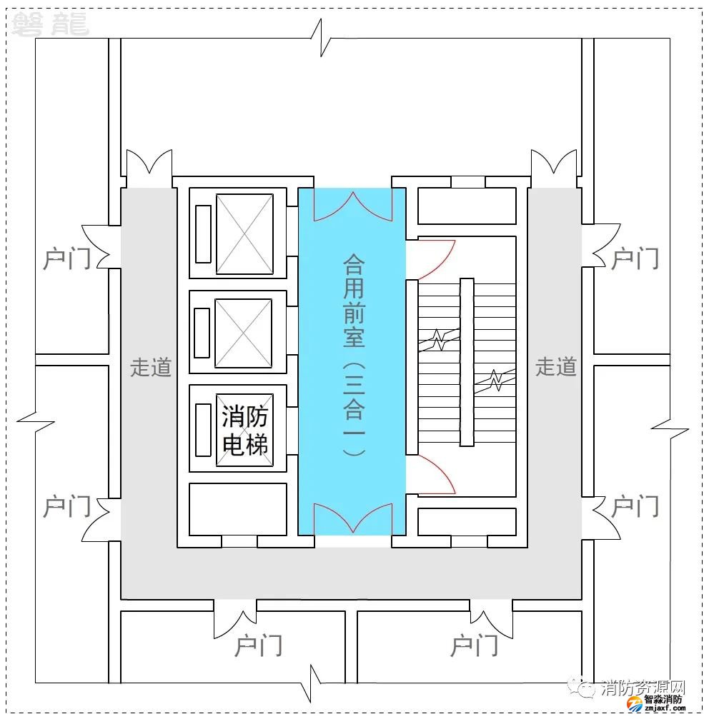 一、住宅建筑人員較少且熟悉現場疏散環境,因此,在住宅建筑中,為了解決疏散走道雙向疏散的問題,疏散走道通過獨立的消防電梯前室(不能是合用前室)連通,雖然是一種不合適的方式,但通常被允許(有爭議)。