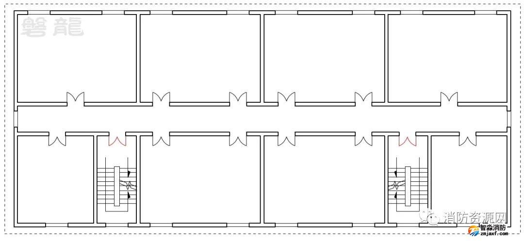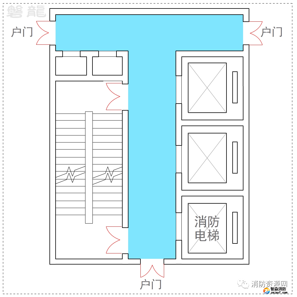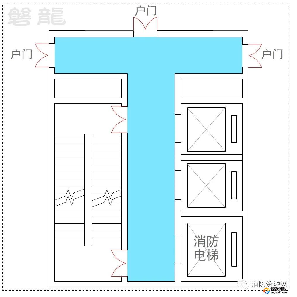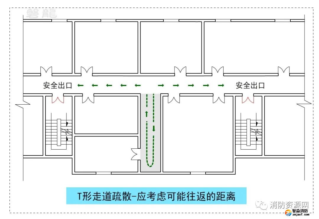 二、T形走道也稱為丁字形走道(示例3),是消防安全疏散設計中不可回避的形式。