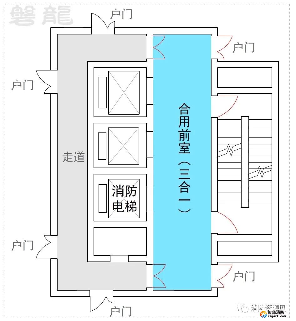 三、公共建筑人員較為繁雜,穿套前室會直接影響消防電梯前室的封閉性能,且人員不一定熟悉現場環境,封閉的消防電梯前室門可能導致疏散盲區,因此,公共建筑不應許可穿套消防電梯前室。