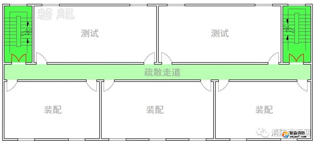 1、在圖示6的廠房建筑中,同樣應采用“房間”→“疏散走道”→“安全出口”的基本設置原則,確保風險逐級降低,廠房倉庫疏散走道兩側的隔墻,其燃燒性能和耐火等級,應符合規范要求。
