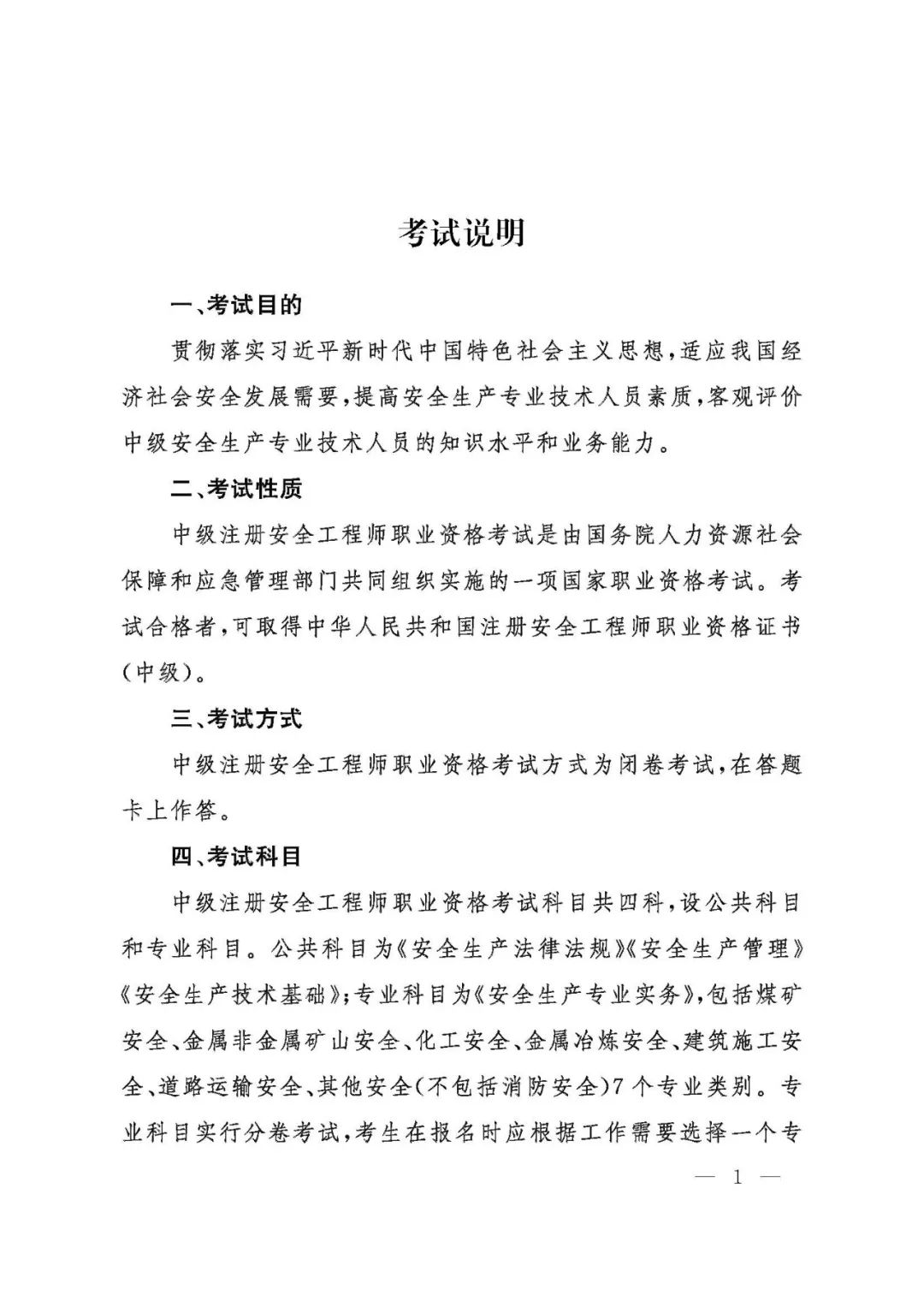 為做好中級、初級注冊安全工程師職業資格考試工作,按照《注冊安全工程師職業資格制度規定》《注冊安全工程師職業資格考試實施辦法》(應急〔2019〕8號)有關要求,應急管理部組織編制了《中級注冊安全工程師職業資格考試大綱》《初級注冊安全工程師職業資格考試大綱》,經商住房和城鄉建設部、交通運輸部同意,人力資源社會保障部審定,現予以印發施行。