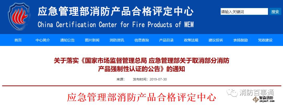 2019年7月29日,國家市場監(jiān)督管理總局、應(yīng)急管理部發(fā)布了《關(guān)于取消部分消防產(chǎn)品強制性認(rèn)證的公告》(2019年第36號)(詳見附件),對消防水帶、噴水滅火產(chǎn)品等十三類消防產(chǎn)品(含部分火災(zāi)報警產(chǎn)品)取消強制性產(chǎn)品認(rèn)證。為依法依規(guī)開展消防產(chǎn)品合格評定工作,現(xiàn)通知如下: