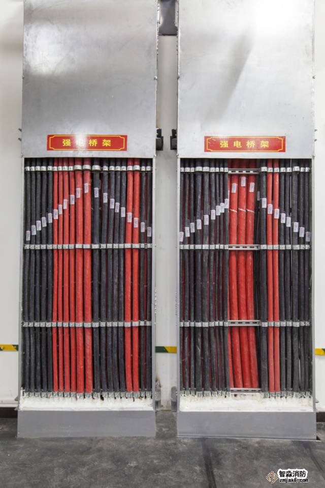 豎向橋架內(nèi)電纜排布有序,標識清晰,防火封堵到位。