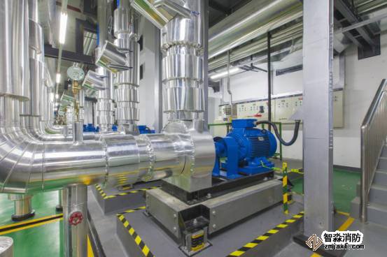 生活水泵房設(shè)備布局美觀,鋁皮外保護精致,管道成排成線,標識清晰。