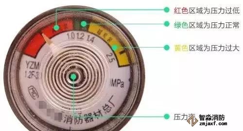2、儲壓式滅火器壓力符合要求,壓力表指針在綠區;