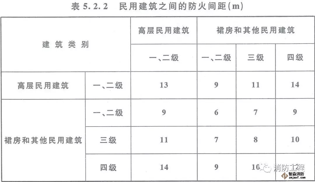 單、多層戊類廠房之間及與戊類倉庫的防火間距可按本表的規定減少2m,與民用建筑的防火間距可將戊類廠房等同民用建筑按本規范第5.2.2條的規定執行。