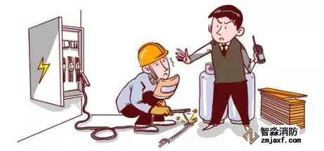 對于建筑工地中存在的一些明火源應專人負責,現場監護,做到人走火滅,對于工地的做飯、取暖,要有專人負責,責任到人,定期檢查,電焊、切割人員必須經過培訓,持證上崗,無論長期、短期工地,堅決杜絕亂接亂拉電氣線路現象。無論是施工用電還是生活用電,必須杜絕“小馬拉大車”現象,必須要請懂電氣的專業電工負責施工和管理。消防安全培訓。