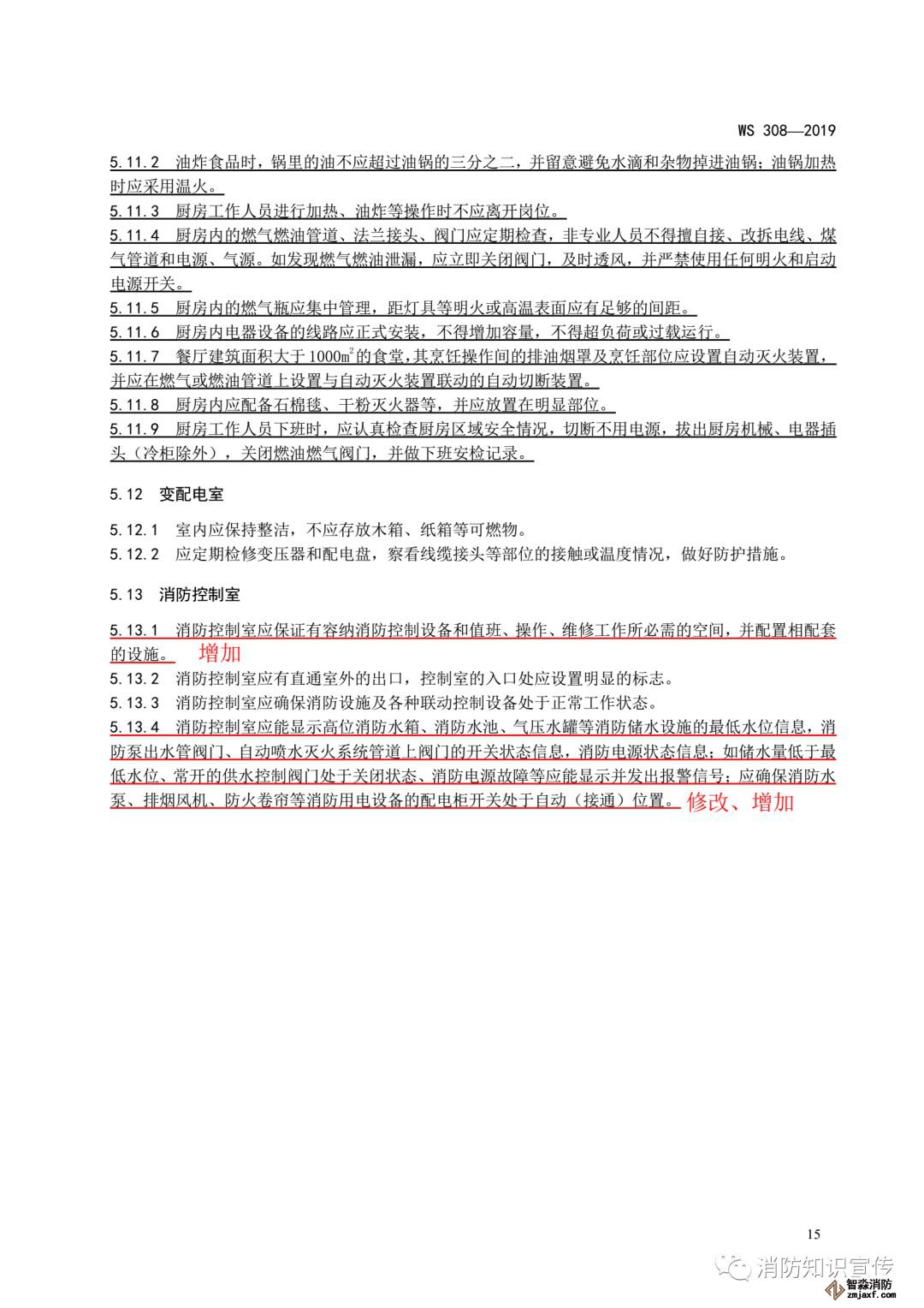 ——增加了消防控制室的信息顯示和設備管理要求(見5.13.4)。
