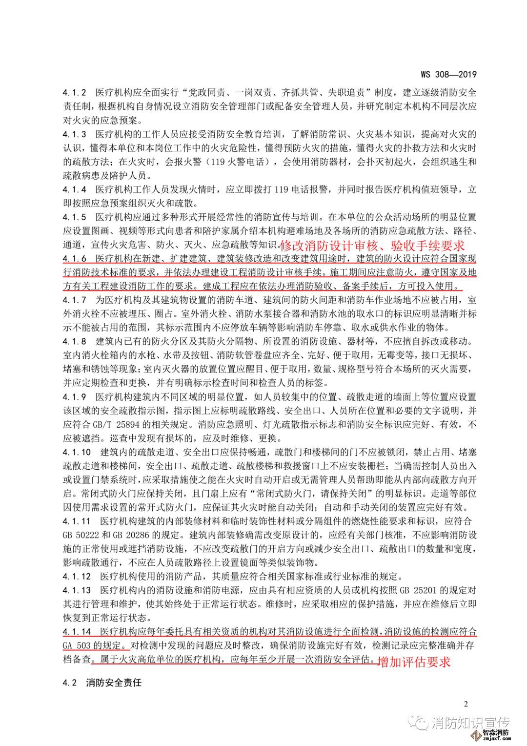 ——增加了屬于高危單位的醫(yī)療機構開展消防安全評估的要求(見4.1.14);