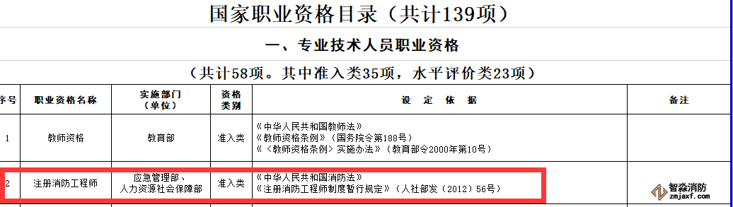 1月17日,人力資源和社會保障部發布最新版國家職業資格目錄(共計139項),其中注冊消防工程師實施部門由原公安部、人社部改為應急管理部、人社部。劃歸應急管部,開始了大刀闊斧的各項制度改革。
