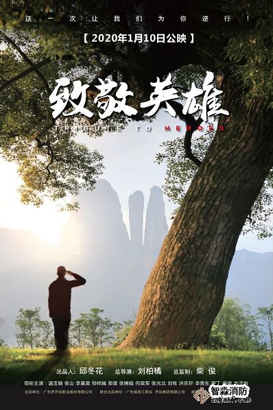 電影《致敬英雄》自2018年消防隊伍改制轉隸后開始籌備,2019年2月在廣東廣州、佛山、東莞及浙江江山取景拍攝,2019年10月順利完成后期制作,獲得國家電影局批復的上映許可證,將于2020年1月10日在全國各大院線與廣大觀眾見面。