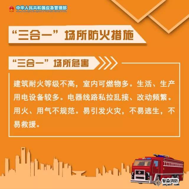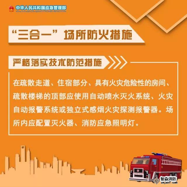 “三合一”場所指生產(chǎn)、住宿和經(jīng)營在一起的小場所,由于生活用火用電和倉儲、經(jīng)營混雜,大多較簡陋、擁擠、可燃物多,極易引發(fā)火災(zāi)。該如何預(yù)防火災(zāi)事故發(fā)生?