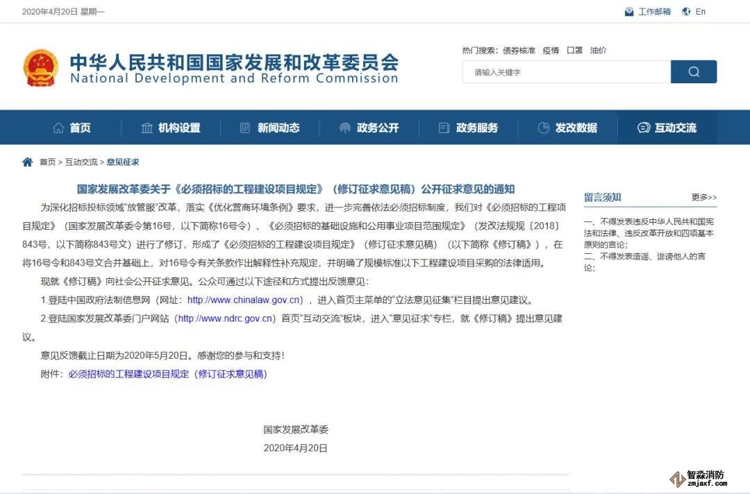 就在本周一(4月20日)!國家發展改革委于發布《國家發展改革委關于<必須招標的工程建設項目規定>(修訂征求意見稿)(以下簡稱《修訂稿》)公開征求意見的通知》,就《必須招標的工程建設項目規定》(修訂征求意見稿)公開征求意見。