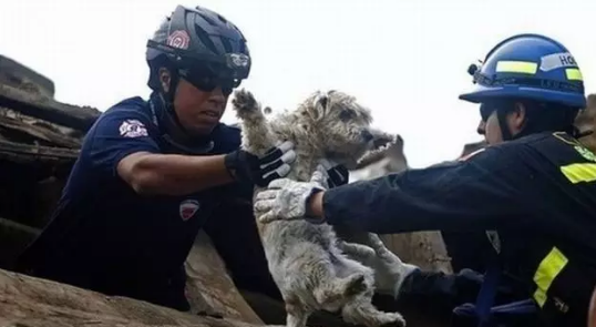 (消防員在解救誤困在煙道內(nèi)的小狗)