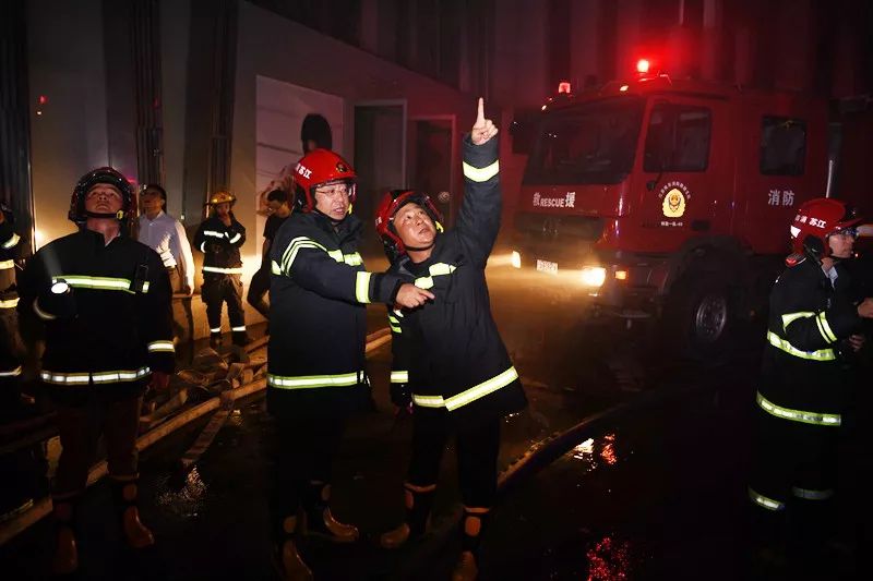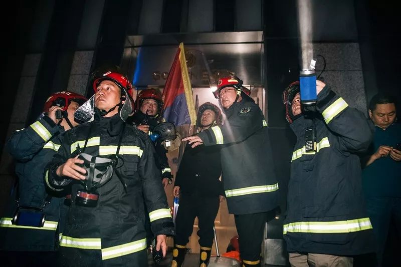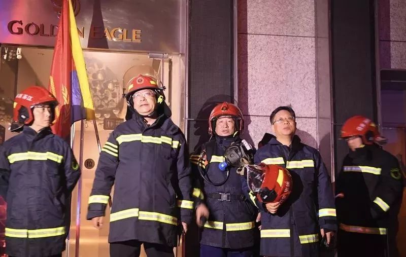21時25分許,周詳總隊長、梁新國政委到達現場。根據災情現狀,周詳總隊長要求:組織到場力量全力搜救被困人員;充分利用固定消防設施進行內攻滅火堵截;消防車停靠、連接大樓水泵接合器,確保建筑內部消防管網壓力、流量不足情況下,滿足前方滅火需要;調派70米以上舉高車到場壓制外墻蔓延火災;參戰指戰員加強防護、編組作戰,確保不發生人員傷亡。