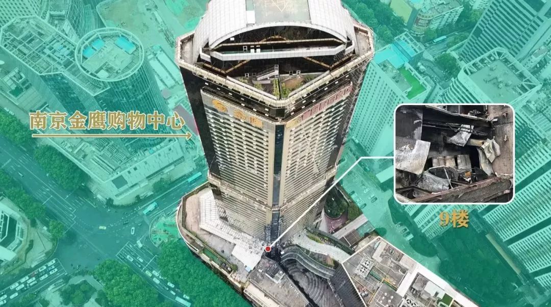 金鷹A座購物中心由南京金鷹國際集團有限公司開發建設,其中商業部分于1996年4月份投入使用。建筑地上58層,地下2層,建筑高度218米,總建筑面積14.8萬平方米,是典型的商業綜合體建筑,涉及商場、酒店、餐飲、影院、寫字樓等多種業態。起火原因為9樓裝修改造工程的施工人員在拆除油煙機設備過程中違規動火作業引燃可燃物,火勢沿玻璃幕墻縫隙及外墻迅速向上、下樓層蔓延,大樓部分外立面及房間過火,主要燃燒物質為大樓外墻材料。