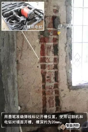 落實水路走向后,開始開暗槽,用專業的切割機按照畫好的線路開槽,這個工序一般會持續3--4小時。此時要注意切割時不要切入太深,以免破壞墻體的鋼筋,影響房體結構。