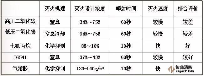 工程應用時,應綜合考慮:滅火可靠性、環保性、對設備和人員的安全性、工程造價、技術成熟性等因素,選擇最佳的滅火系統。