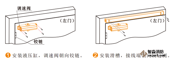 4) 確定好電動閉門器的安裝方向(拉門側或推門側)安裝閉門器滑槽及液壓缸;