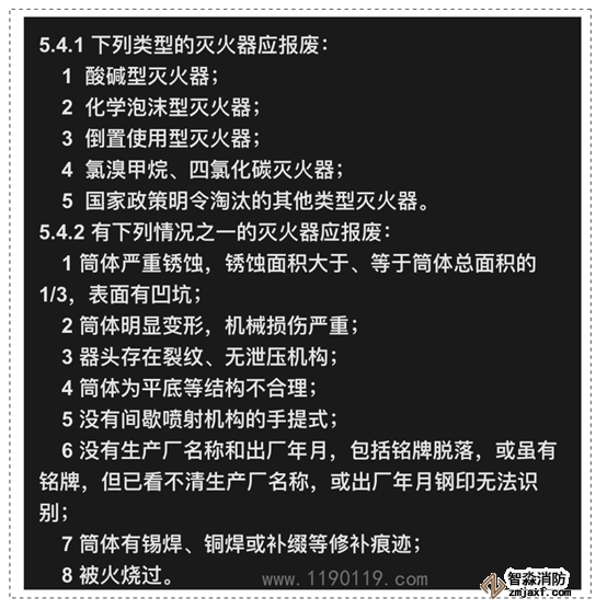 GB50444和GA95均規(guī)定了滅火器需要報廢的情形,在滅火器的日常和定期巡檢中,若發(fā)現(xiàn)以下情況之一的,應(yīng)予以報廢: