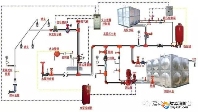 3、噴頭動作后或末端泄放裝置打開,聯動泵后管道前端無水
